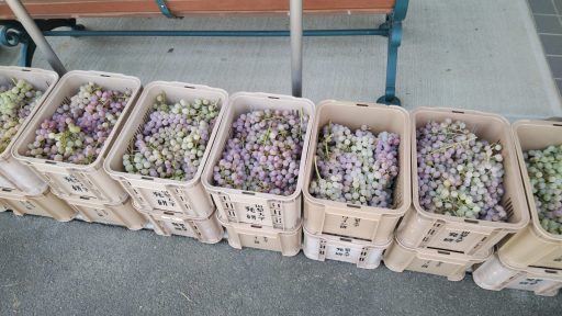 【教育】醸造用ブドウの収穫が行われました 今月から山梨大学付属の小曲圃場では、醸造用ブドウの収穫が品種ごとに行われています。 今回は、日本産の醸造用品種である「ベーリー・A」と「甲州」の収穫の様子です。 まだまだ残暑が厳しい中、長時間の収穫作業お疲れ様でした。