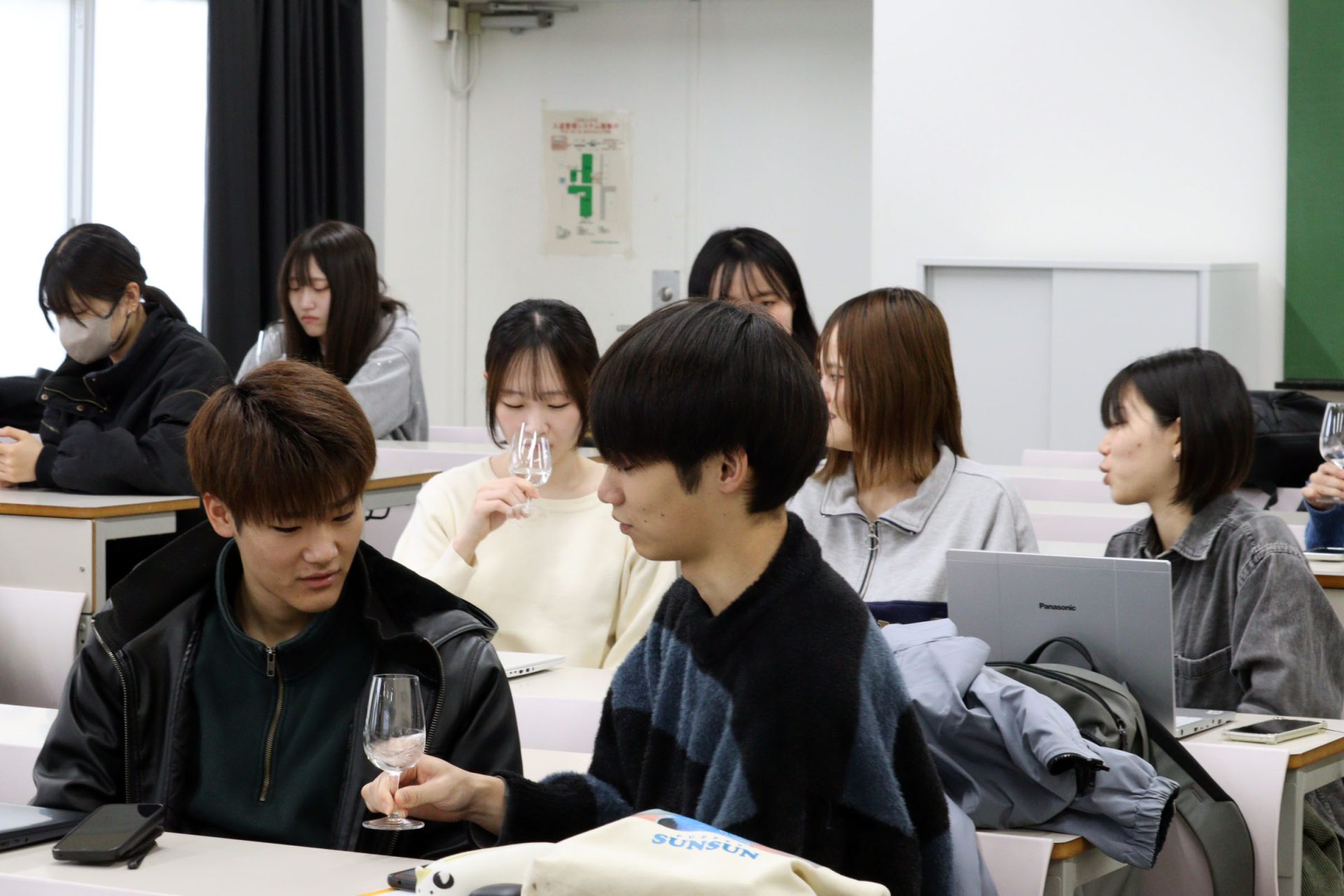 本授業では、ワインの品質評価に加え、世界のワイン文化や、飲酒が身体や社会に及ぼす影響についても取り上げています。地域食物科学科では、食を通じて地域や社会を理解し、科学的視点から深く学ぶ教育を展開しており、本授業もその一環として位置づけられています。